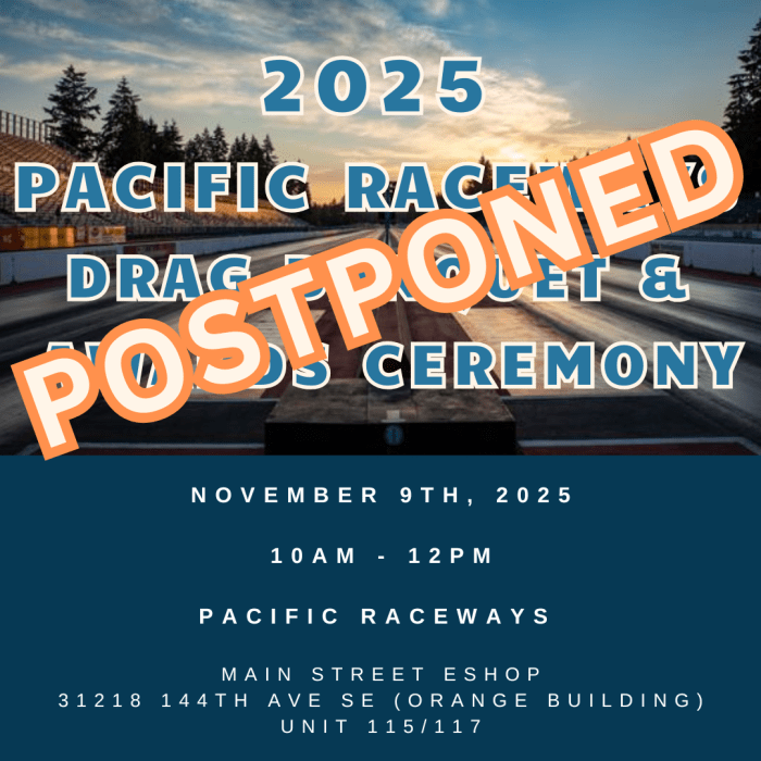 We will be postponing the 2025 Drag Racing Banquet & Awards Ceremony. We will get more information out once a new date is selected!
