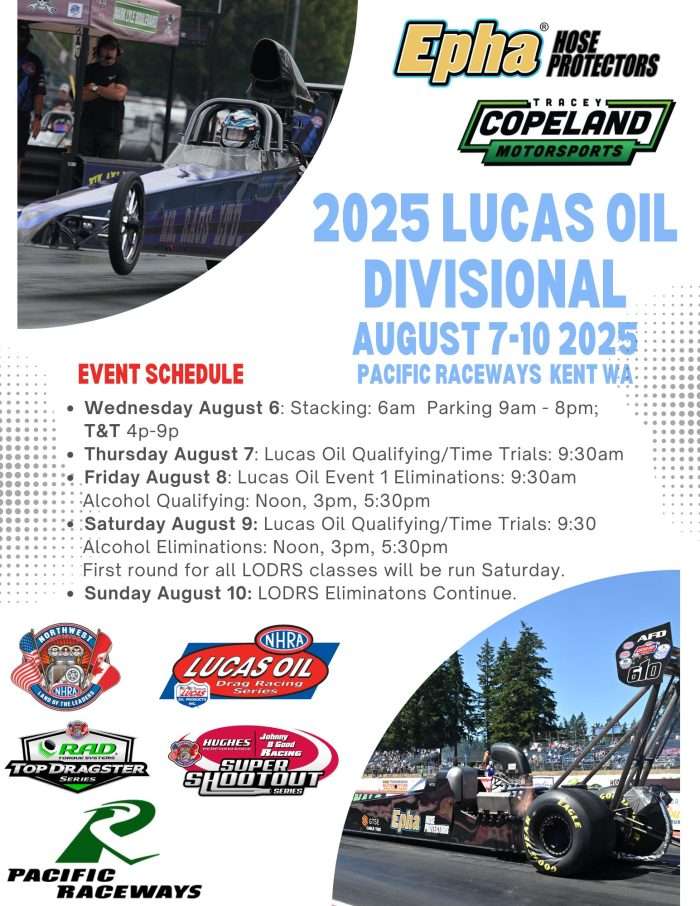 Once again, thank you for pre-registering for the Pacific Raceways Lucas Oil Divisional event. We appreciate your participation and patience as we implement this new registration process.